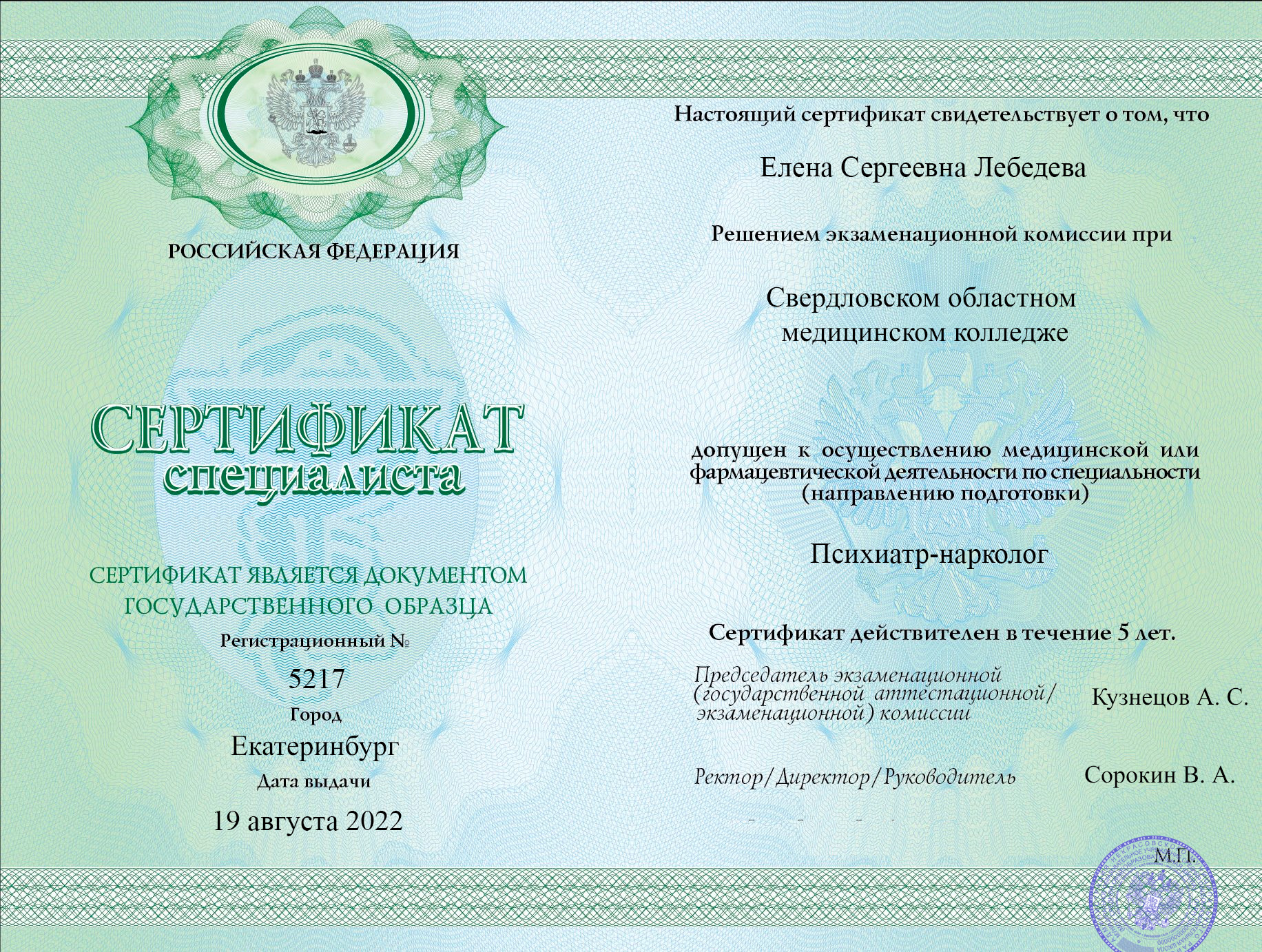 Елена Сергеевна Лебедева врач нарколог клиники доктора Стукаловой в Лермонтово
